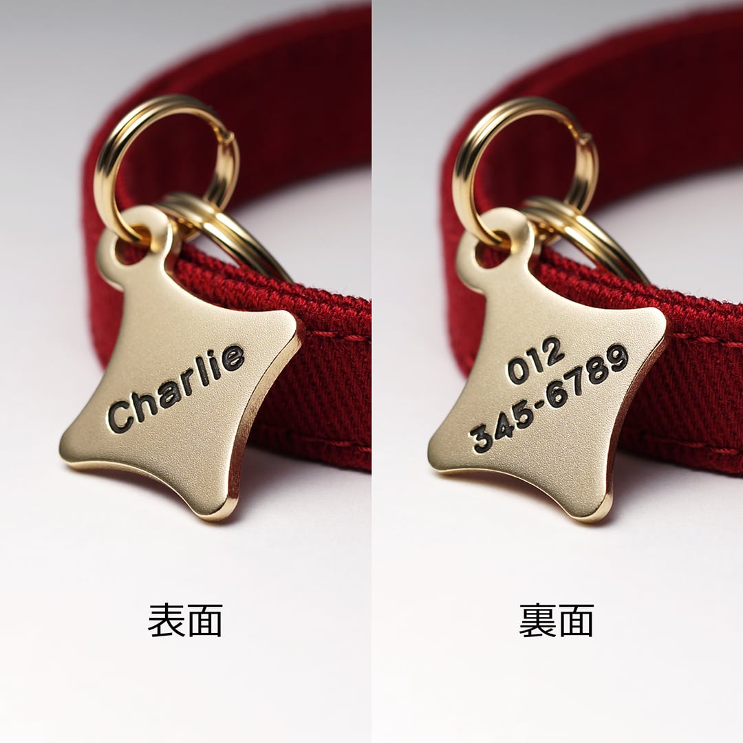 ネコの迷子札。ツインクル(星のきらめき)形。素材は真鍮です。